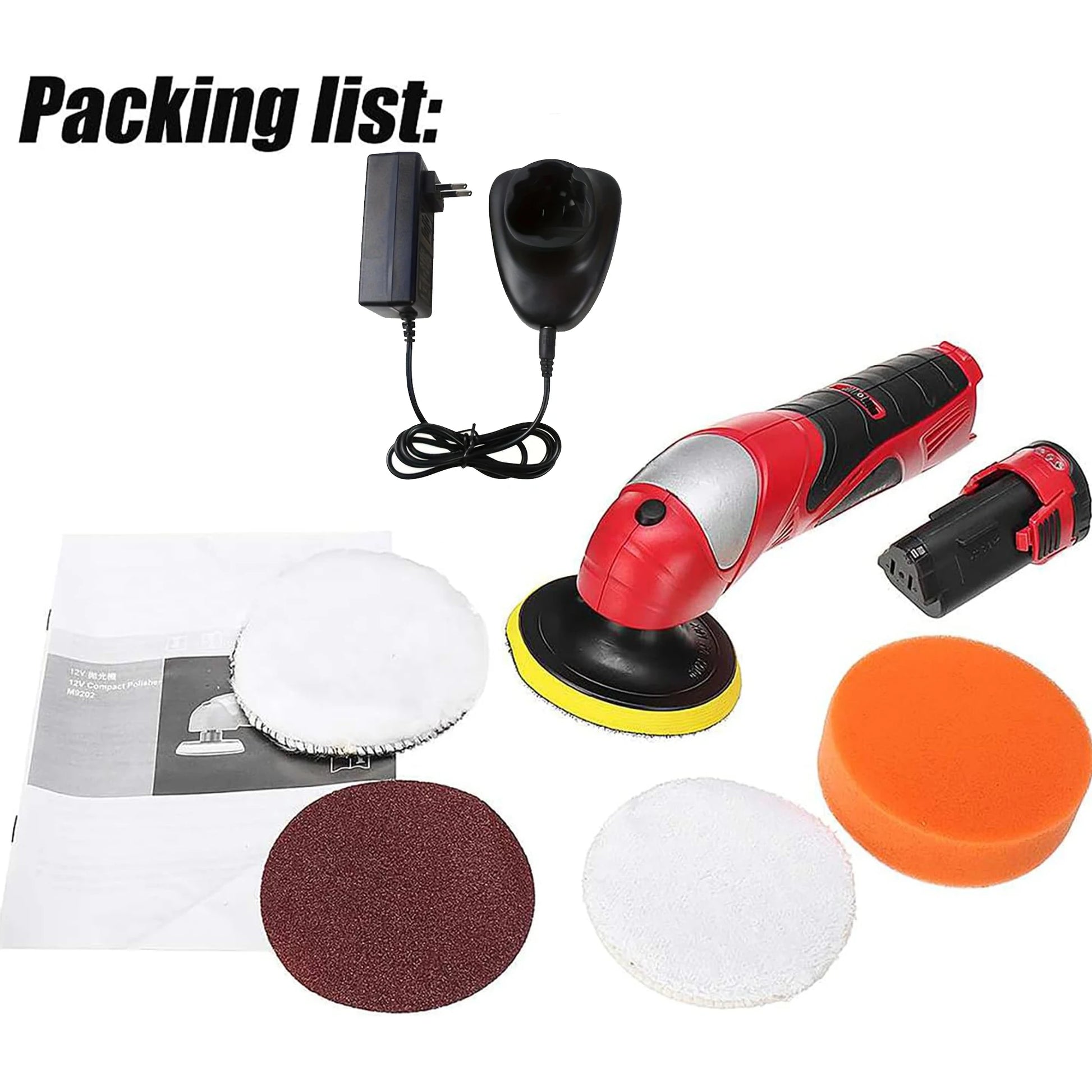 12V Compact Polisher Vehicle Buffer Polisher Rechargeable Cordless Portable Car Scratch Repair Machine with Lithium Battery