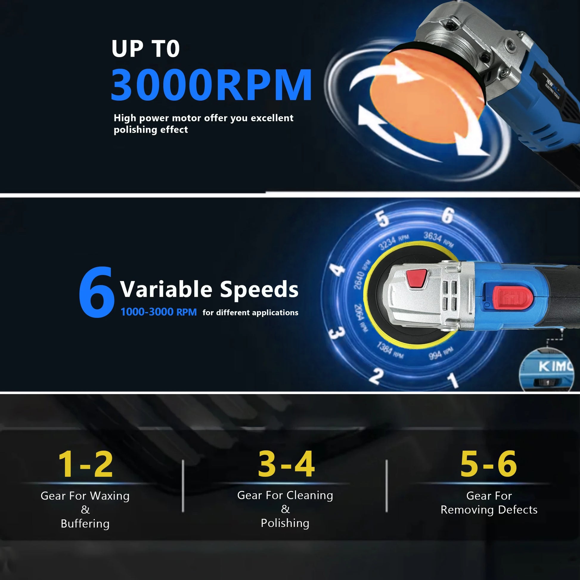 16V Cordless Car Polisher Tool Sets,Cordless Polisher Variable Speed Buffer, 4000mAh Li-ion Battery with Fast Charger and Polish