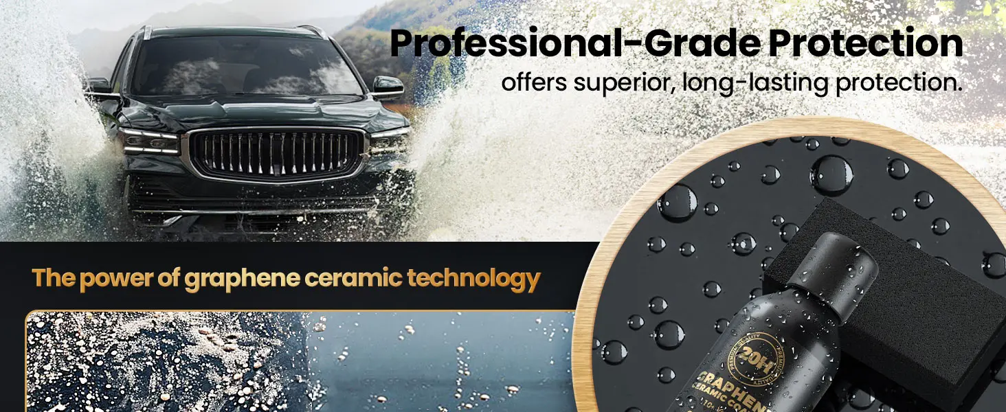 10+ YEARS PROTECTION: Graphene ceramic coating effectively shields against rainwater, dust, UV rays, chemicals, and more for over 10 years. It provides superior and durable safeguarding for your vehicle compared to traditional ceramic coatings