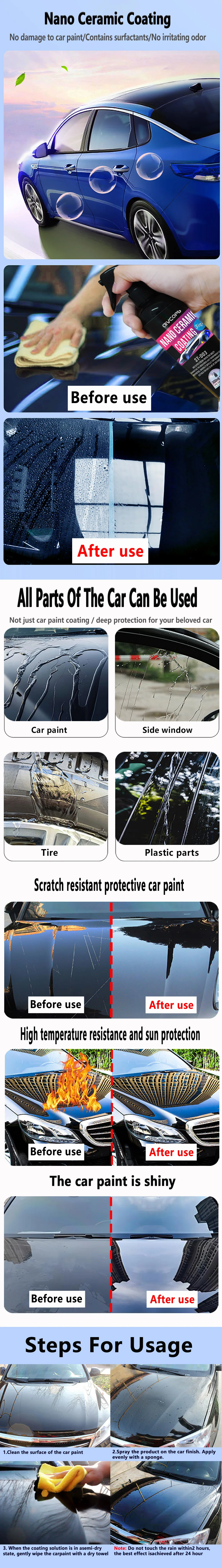 This product uses cutting-edge nanotechnology formula, specially developed for automotive paint protection. The combination of special hydrophobic polymers and silica nanoparticles can perform multiple functions in a short period of time, providing a convenient and efficient experience for vehicle surface care.