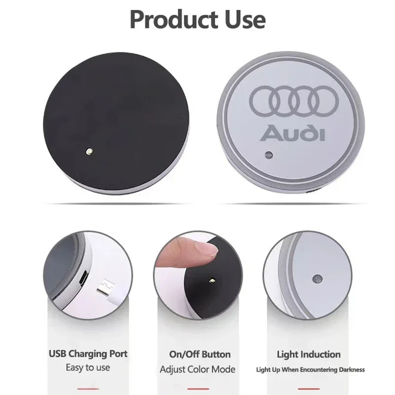7 Color LED Car Cup Holder Light Luminous Coaster Water Cup Pad For Audi Sline A3 A4 A5 A6 A7 A8 Q3 Q5 Q7 S3 S4 S5 S6 S7 B6 B7