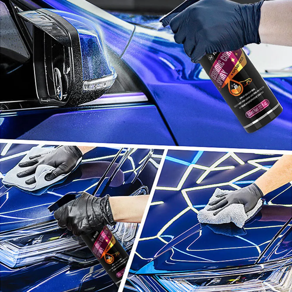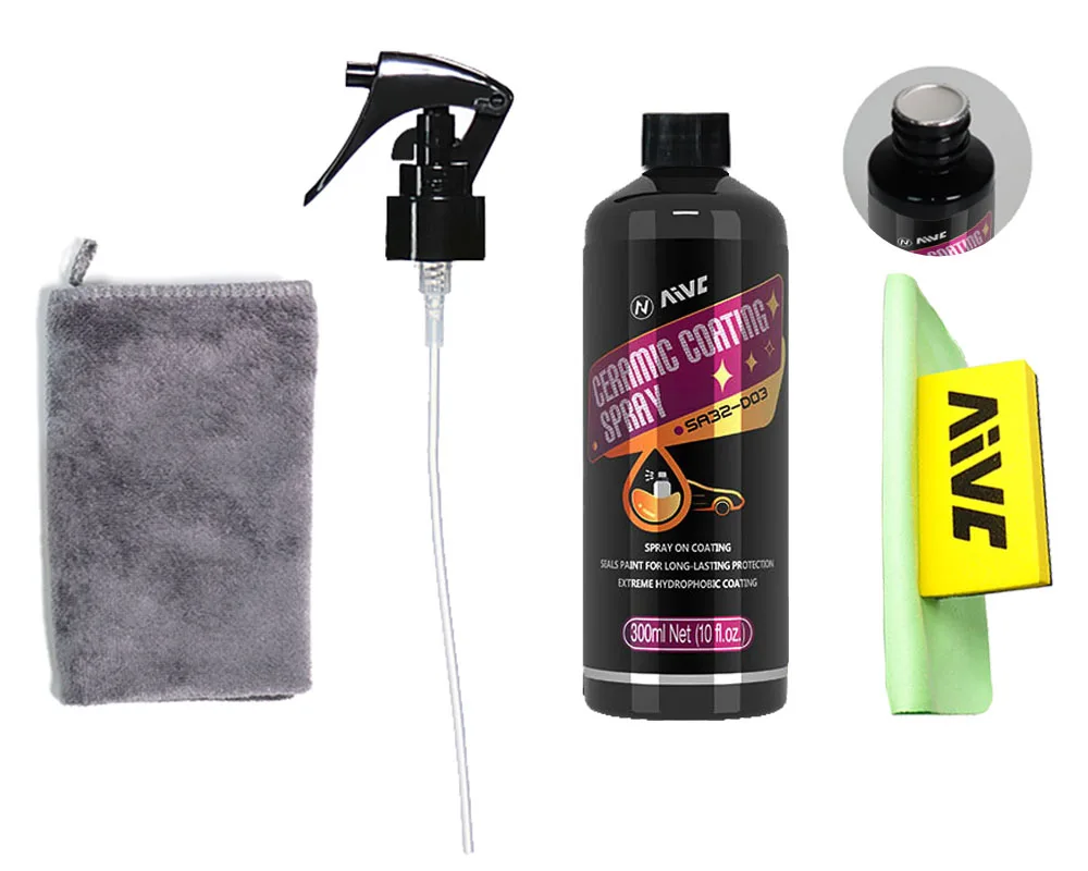 Aivc Ceramic Coating Spray uses ceramic SiO2 nanotechnology to seal the pores of your car's paint, creating a perfect layer where water behavior becomes highly and excessively active, resulting in rapid water acceleration off any treated surface.