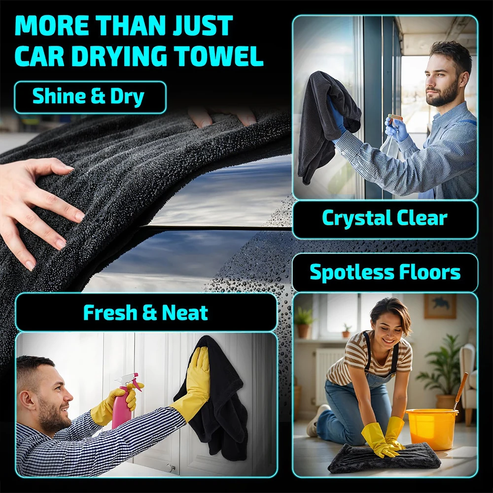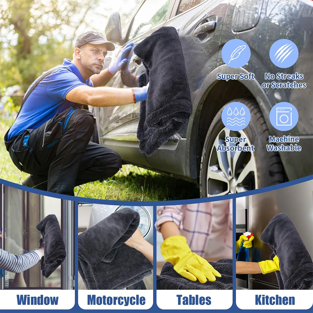 AUTOBRIGHT Microfiber 60*90cm 1300gsm One wipe drying Towel Car Wash Cloth Premium Cloth Thicken Soft Professional Car Cleaning