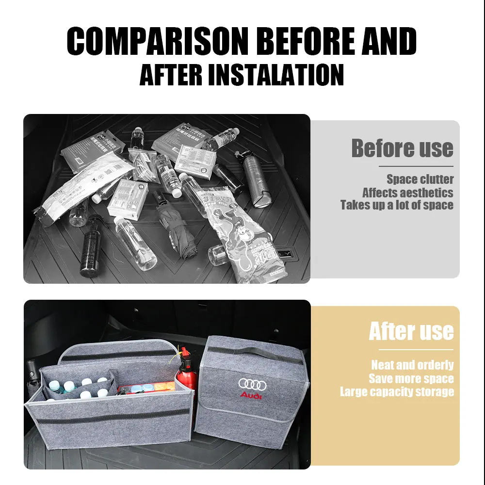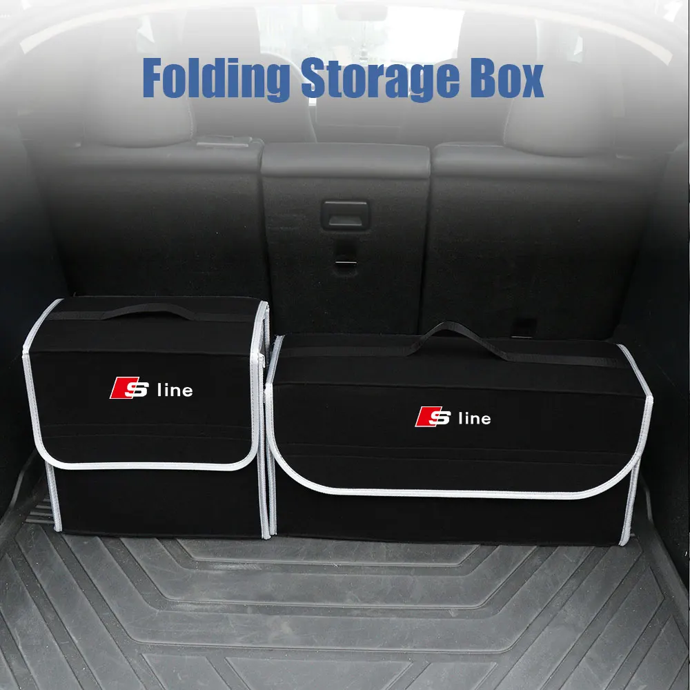 Car Emblem Trunk Organizer Storage Box Auto Interior Stowing Tidying Accessories For Audi SlineA4 B8 A3 8P A6 C7 8V B6 B7 TT RS