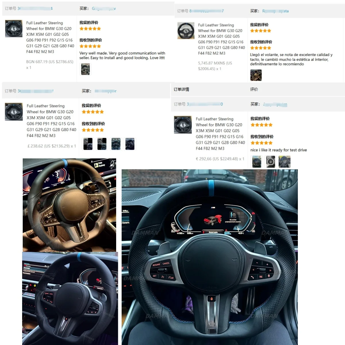Full Leather Steering Wheel for BMW G30 G20 X3M X5M G01 G02 G05 G06 F90 F91 F92 G15 G16 G31 G29 G21 G28 G80 F40 F44 F82 M2 M3