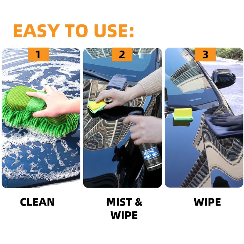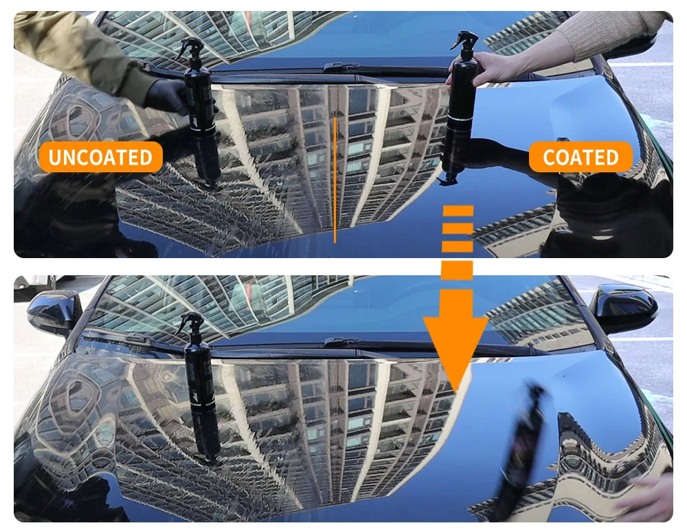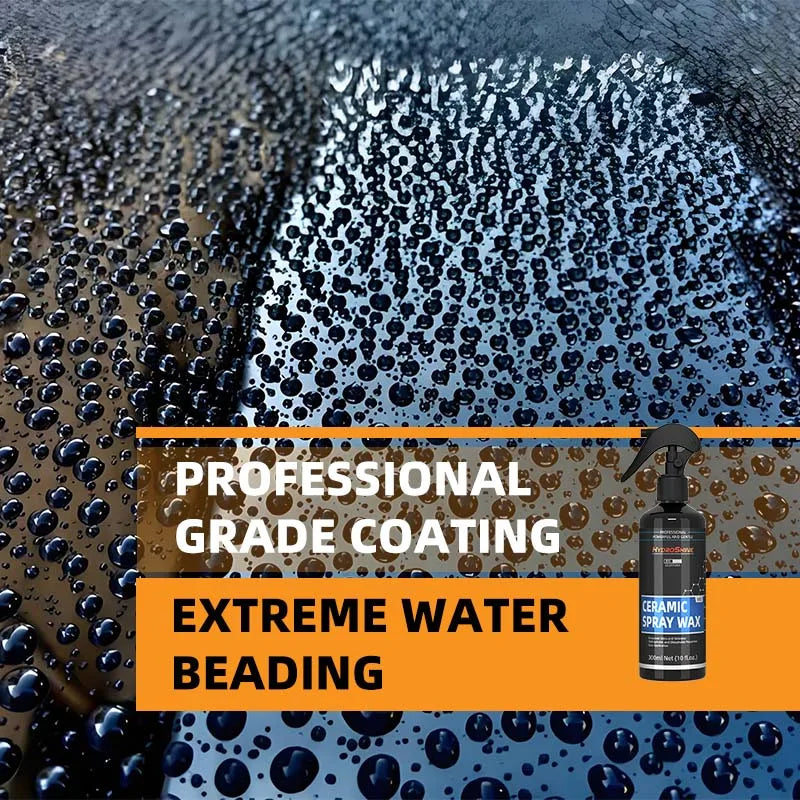 Ceramic Spray Wax uses ceramic SiO2 nanotechnology to seal the pores of your car’s paint, creating a perfect layer where water behavior becomes highly and excessively active, resulting in rapid water acceleration off any treated surface.