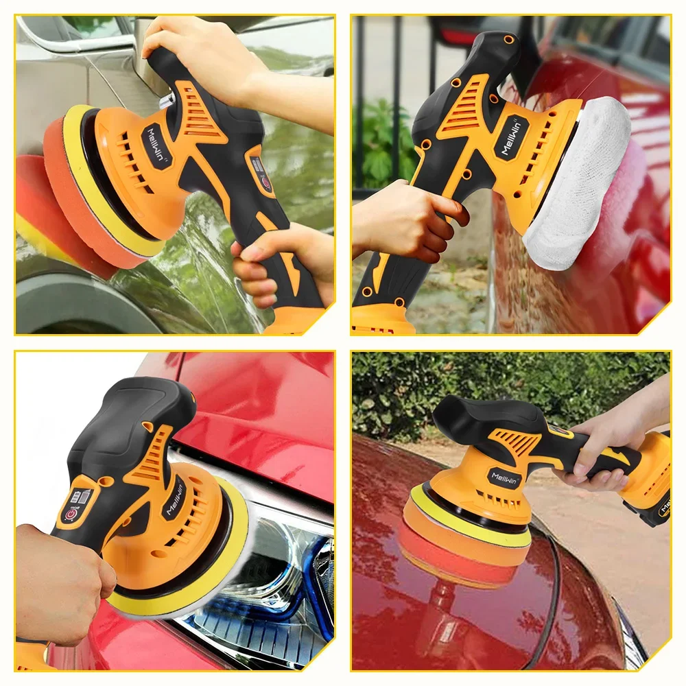 MELLWIN 6000rpm 8Gears Digital Display Cordless Electric Polisher Car Polishing Waxing Sanding Machine For Makita 18VBattery Pin