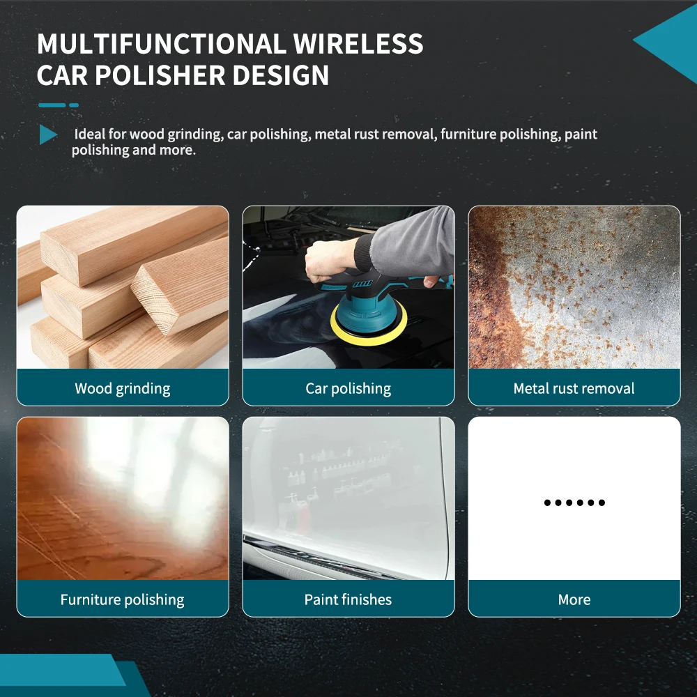 [Multifunctional Wireless Car Polisher Design] Ideal for wood grinding, car polishing, metal rust removal, furniture polishing, paint polishing and more.