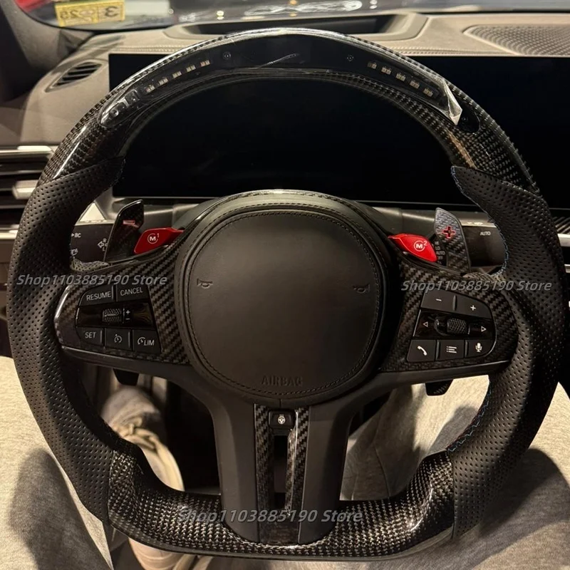 Real Carbon Fiber LED Steering Wheel With Heated For BMW M3 Series G20 G21 G22 G23 G80 G82 G26 G29 G83 Leather Steering Wheel