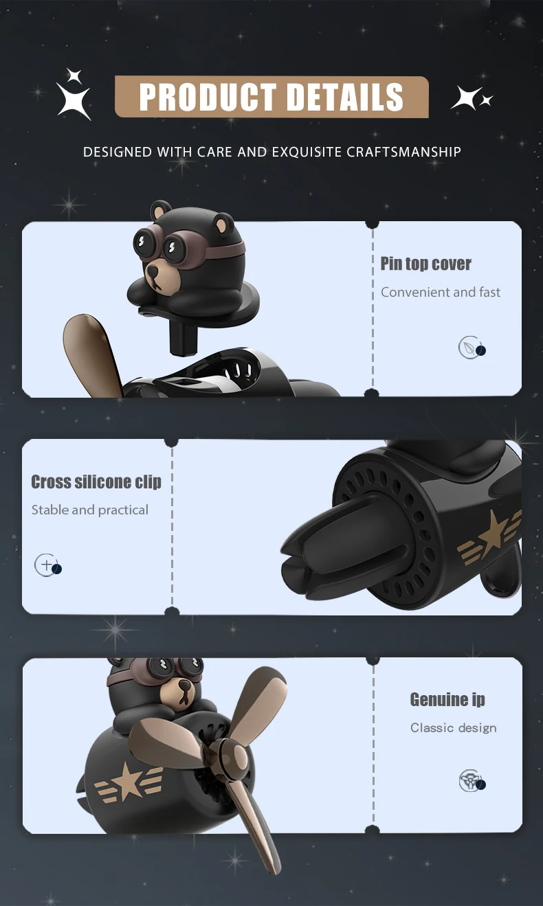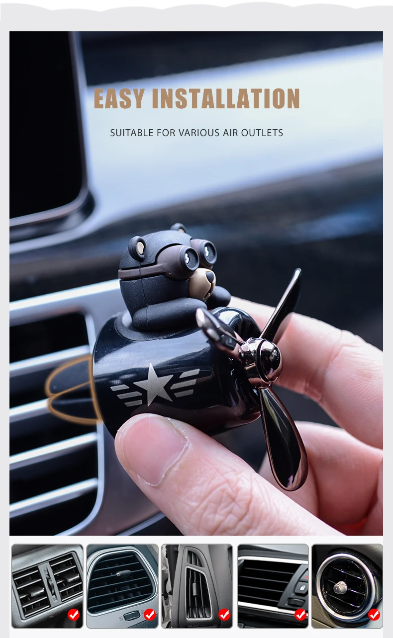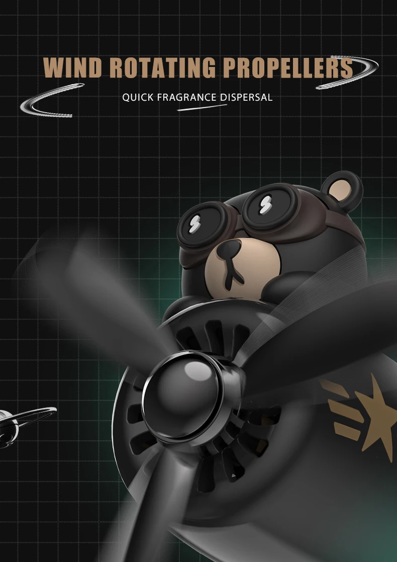 Rotating airplane pilot bear car air freshener accessories interior decoration fan vent clip perfume fragrance diffuser ornament