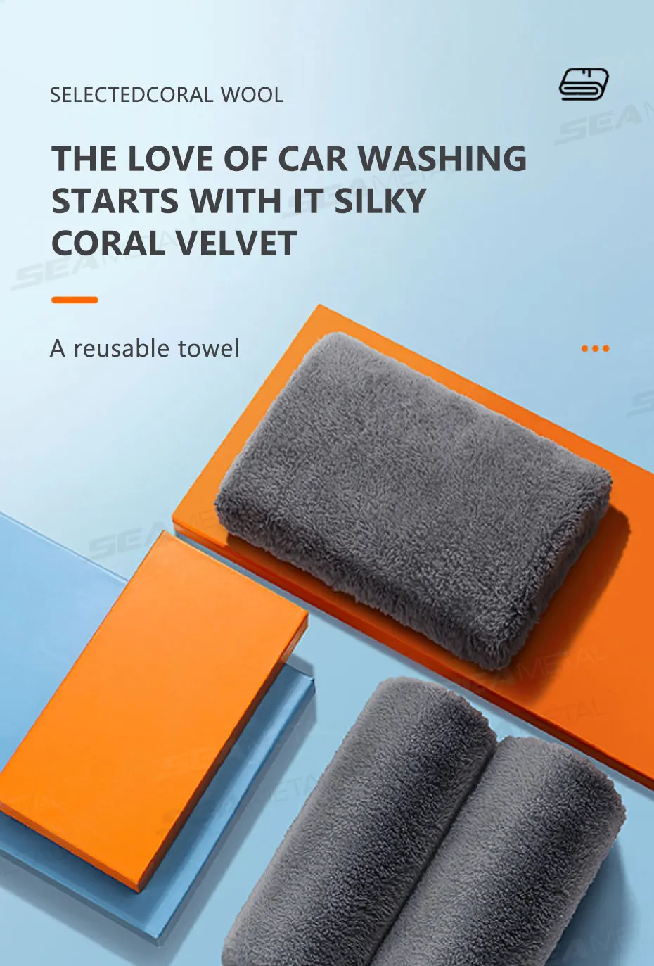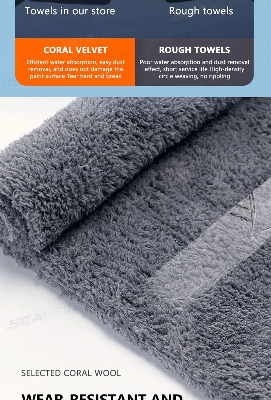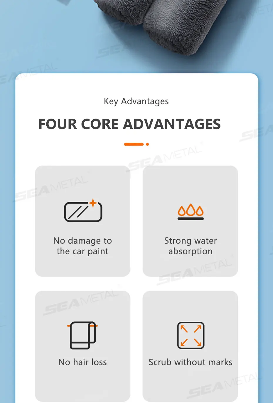 SEAMETAL Car Wash Microfiber Towel 5 Sizes Car Cleaning Fast Drying Cloth Reusable Rags Super Absorbent for Car Home Clean Tools